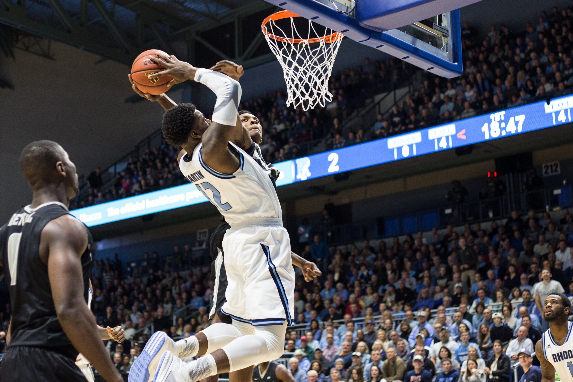 However, the end of the half is where things really got interesting. With the game tied at 70, Rhode Island attempted to trap Kris Dunn. As Dunn was pushed toward the sideline he threw a pass toward the middle of the court, which was deflected by Jared Terrell. Unfortunately the tip would land right in the hands of Ben Bentil for an uncontested dunk and a 72-70 lead. Terrell however would then answer with a jumper of his own to tie the game at 72, after Hassan Martin grabbed an offensive rebound to feed Terrell’s second shot attempt.