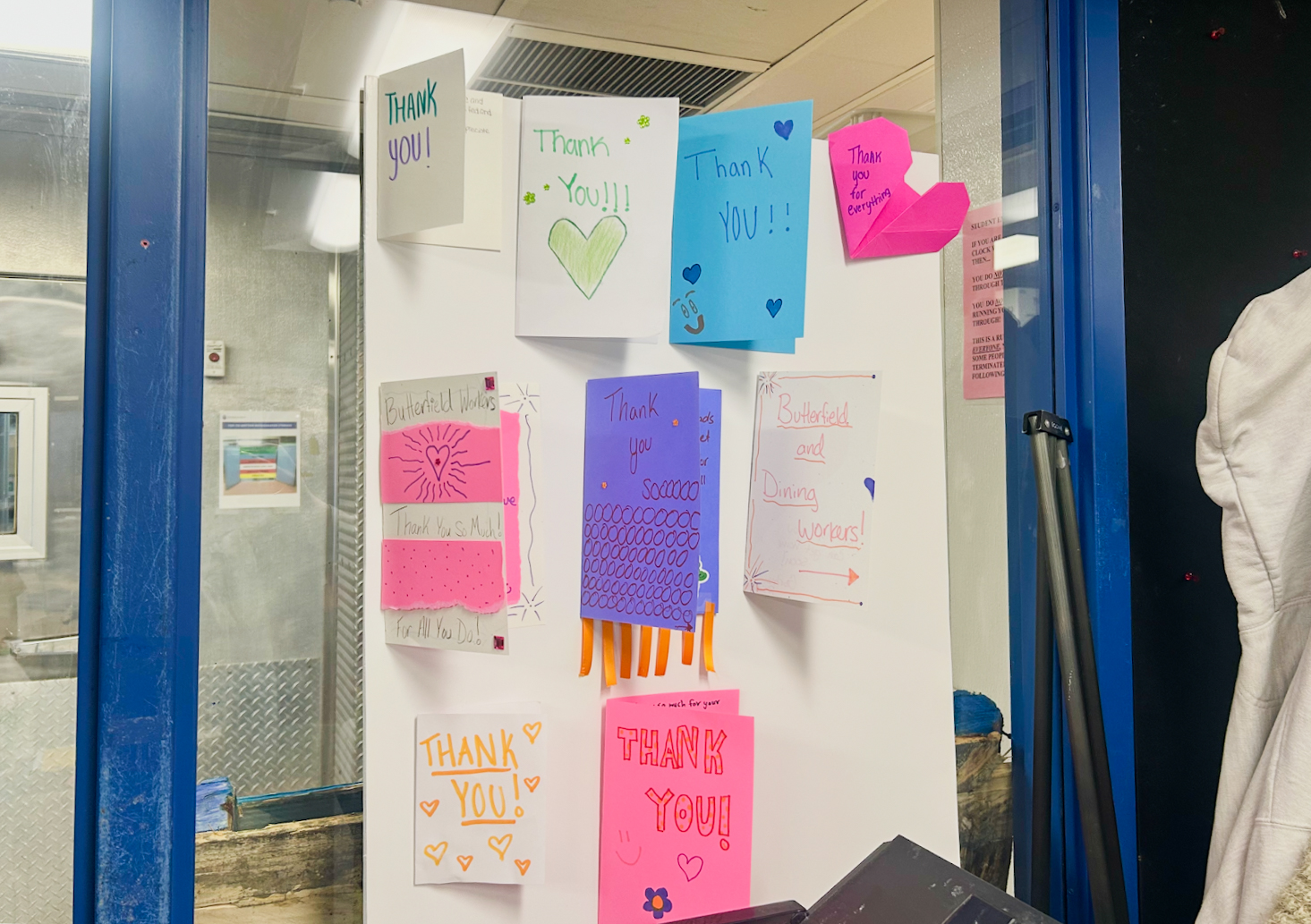Students were so moved by the news of the impromptu Butterfield sleepover that they made thank-you cards for those who stayed over.