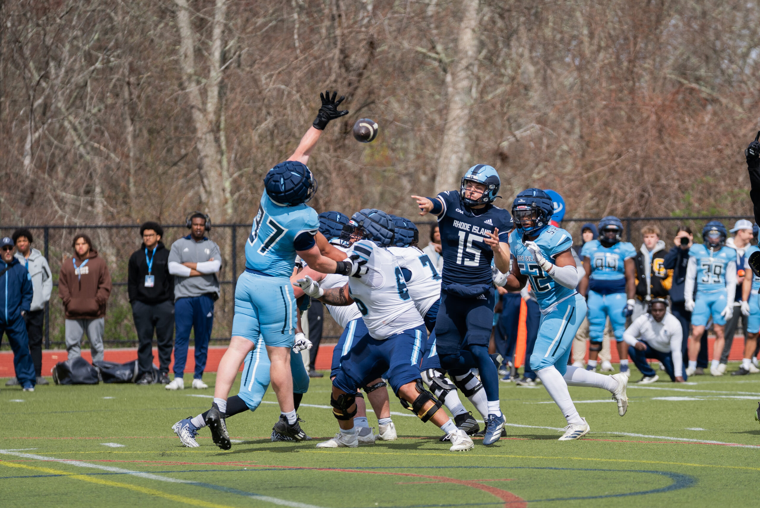 The University of Rhode Island football team competed in its annual Spring Game on Saturday, as the defense started with a 24-point lead and held on in a 24-14 victory.